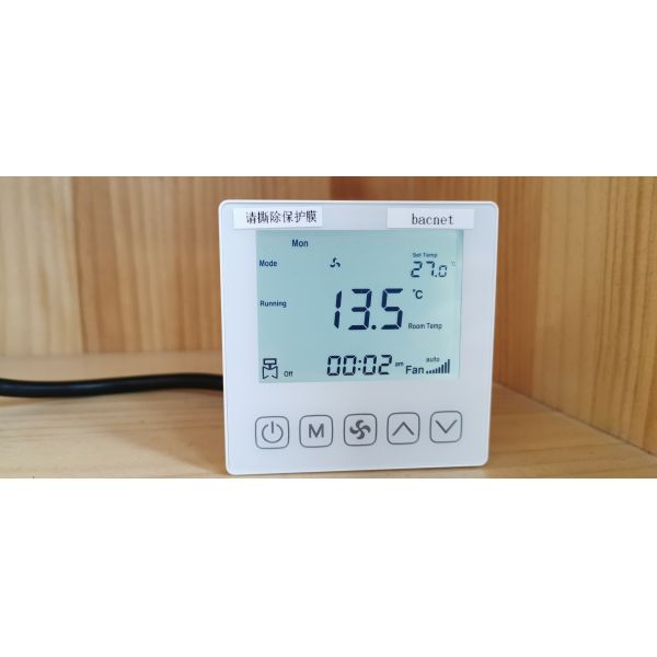 TF803 series LCD digital thermostat, utilizes large screen digital display control technology, high-performance microcomputer chip, high quality output device, modular switch power supply with high stability, flame retardant shell (flame retardant grade V0), and RS485 communication technology, the communication protocol is BACnet MS/TP protocol, which provides solid technical support to improve temperature control accuracy, realize effective energy saving and guarantee human comfort.